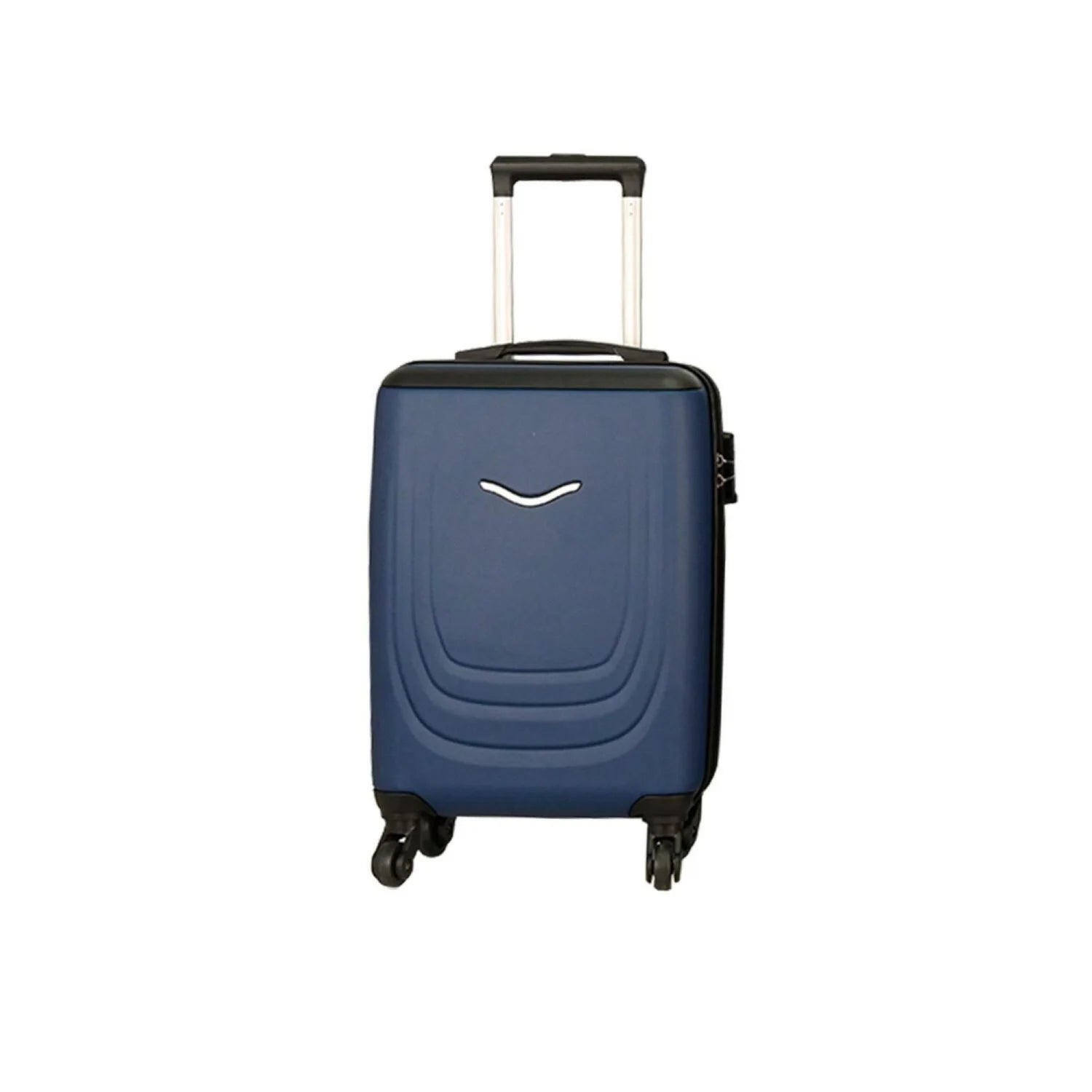 Maleta ABS 4 ruedas color azul marino, 55cm. Fabricado en ABS rígido. Barra telescópica multiposición integrada con pulsador. 4 ruedas multidireccionales para un desplazamiento suave. Cerraduras de Dial para mayor seguridad. Medidas: 55 cm / Alto: 55 cm